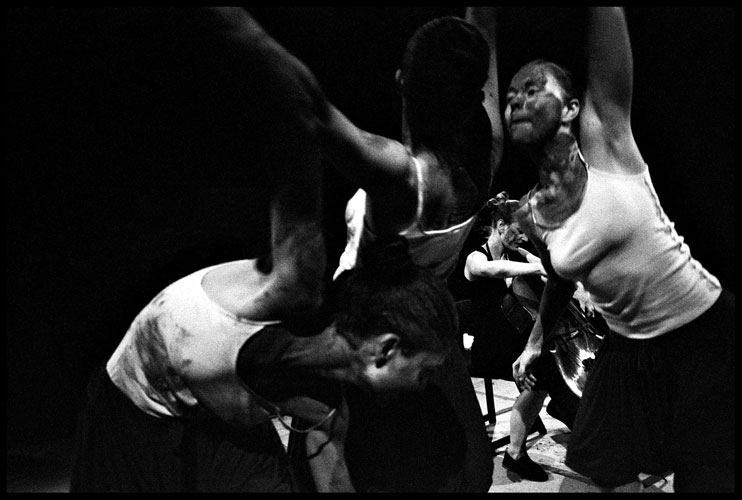 Komedie omylů, PaS de Théâtre, uprostřed Jiří Sedláček (Dromio Syrakuský) s Petrem Sýkorou (Antifolus Syrakuský) v nelítostném ...